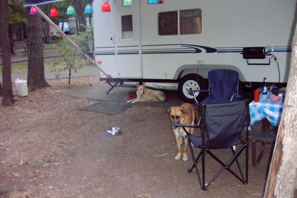 We have been camping with dogs since 1993. First it was Shana, a white shepherd that would watch us load the trailer. As soon as her food bowl was taken to the trailer she would run and jump into our conversion van. Shana would sit blocking the open rear door of the van until we left. She was the ultimate camping dog, polite, never whined or complained; and loved hanging out with the family.
