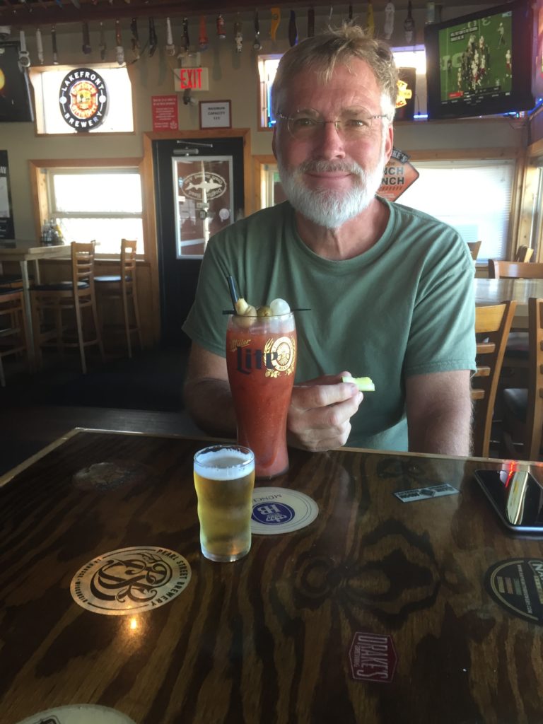 We started out with their Bloody Mary and beer chaser while they prepared our breakfast, or as Tammy calls it “a Wisconsin Breakfast”. The Bloody Mary was not as good as their other location; but it was still very good and their breakfast was great. After we finished breakfast we found a full service car wash so that the truck, now filthy from so many miles on the road, would be clean for the wedding. Then we headed back to the trailer and a little after lunch time, Jennifer and Trent returned.