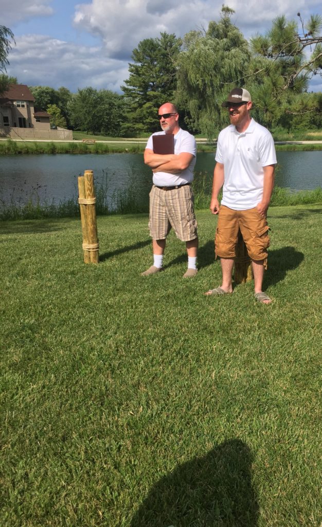 Jeff (right) and Corrine’s cousin who officiated the wedding.