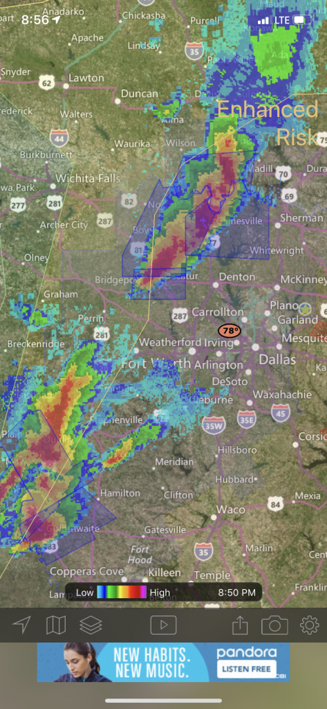 The picture below shows how the storm looked at 8:50 PM as it was making it’s way toward us. However, fortunately for us, it weakened considerably by the time it rolled into our area.
