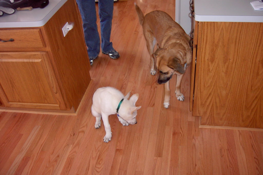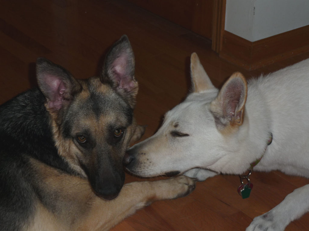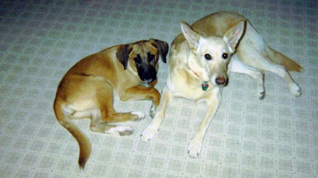 Shana didn’t like our adoption of Kaela at first. She was used to being the only dog in the family. But after just a few days, they became inseparable. Kaela adored Shana as a surrogate mother. Six years later Shana passed away and Kaela sunk into a deep depression. Kaela needed another sister to make her happy.