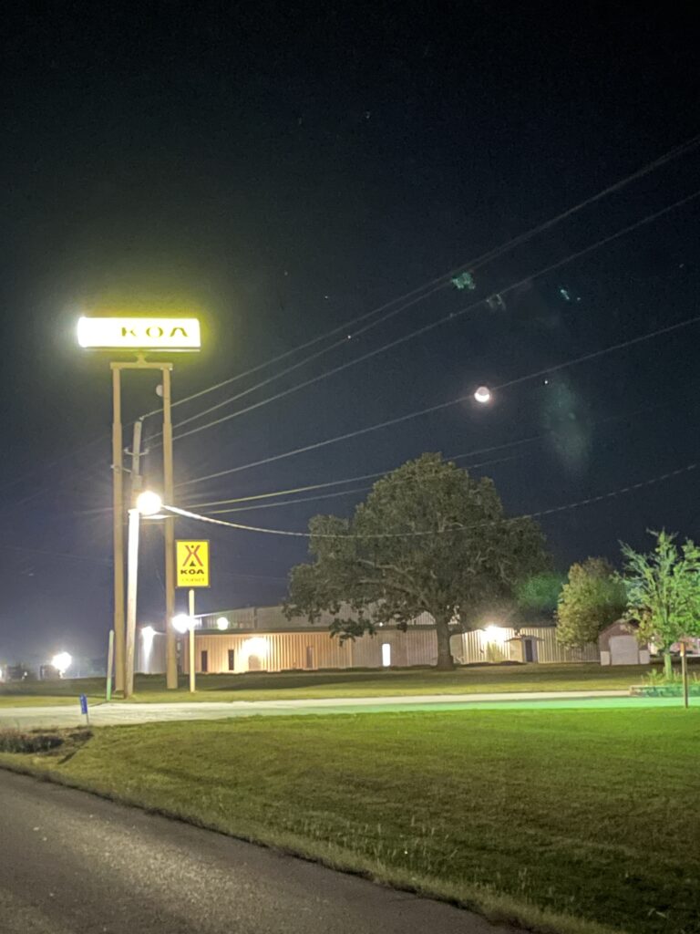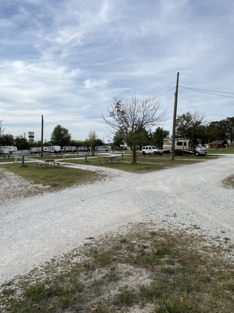 We spent the first night at the Joplin KOA. On a scale of 1-10, I would probably give it a 7. The sites are level but everything in this KOA journey is gravel and the sites are very, very close together. To their credit, our site was so level that I didn’t need to unhook the trailer. So, I hooked up the power and water, extended the slides, and we were set for the night. That night it got down to 56 degrees. When we lived in Wisconsin, 56 degrees was fine. After living in Texas for 11 years, 56 seems very cold. Needless to say, the furnace did run that night.