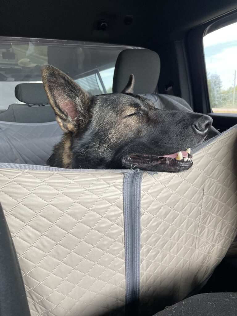 As a side note Eva was wonderful on the trip. We took one potty break at our fill-up at the Lake Eufaula Loves. Tammy was having a conversation with a truck driver next to our truck and Eva was fine with that.