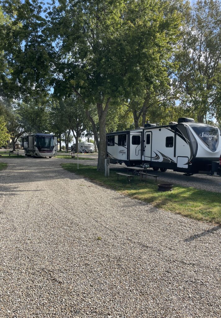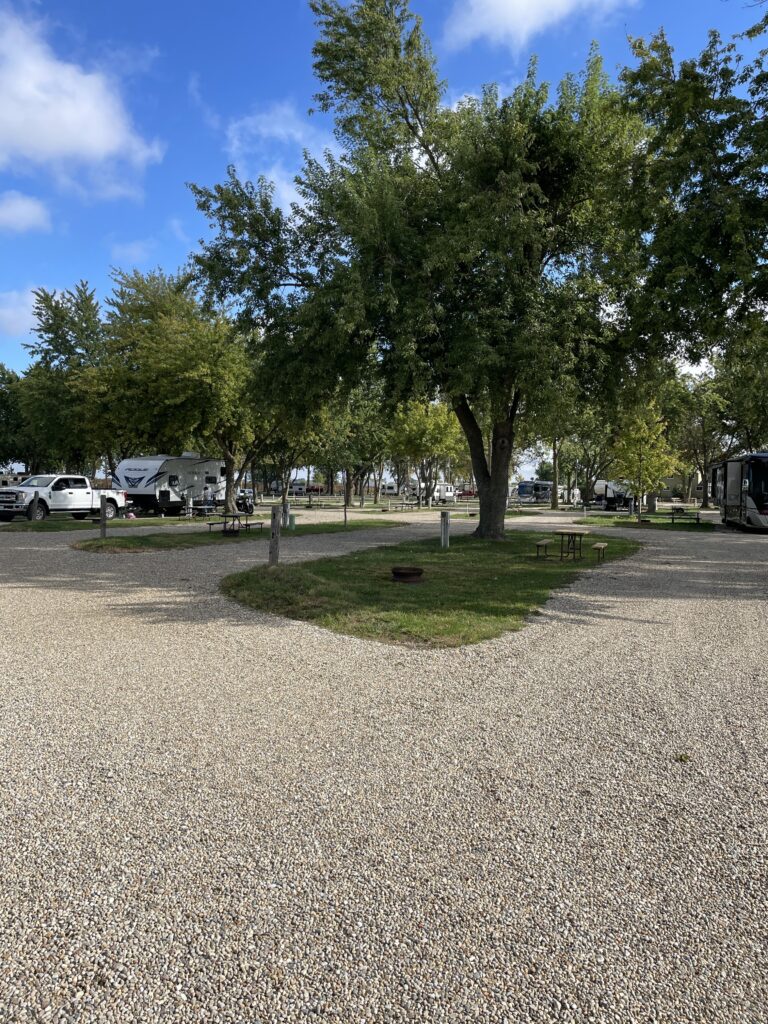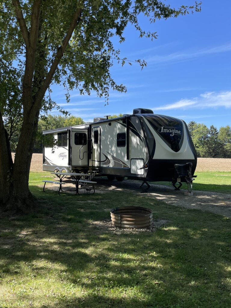 We only had a 4-hour drive to Pilgrims Campground in Fort Atkinson Wisconsin, so we left the Double J at 10:30 AM and arrived at 3:30 PM. I know that’s five hours, but we filled up twice and stopped at a wayside for Eva, because the last Loves didn’t have a nice spot to take her for a potty break. Adding to the time is that I am not flying down the highway at the posted speed of 70 mph or greater; 65 is just fine.