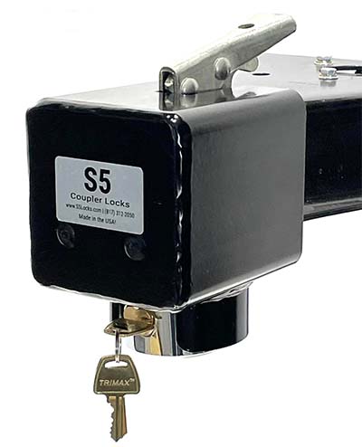LASTLY – a caution about the worst pest of all – the folks that might try to steal your Travel Trailer out of the storage facility. Do yourself a favor and buy the best RV lock you can find. You can easily tap off 20-dollar locks with a hammer, they are junk. The lock below is from The S5 Trailer Coupler Lock | Lock It and Leave It website. Use a heavy-duty lock like this and then also lock your tow chains around your hitch frame with a padlock so they can’t be used to cradle the hitch and then be towed away. Do everything in your power to make sure you make it really difficult for someone to steal it.