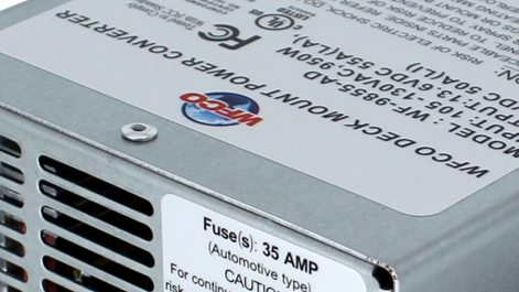 The WFCO Logo is incorrect. The real logo is the globe with WFCO written over it, not the model number. The WFCO Address is off by one digit. The model name should be Arterra, but they misspelled it as Artera.The phone numbers are close but incorrect. I also noticed that the fuses were 40amp, not 35 as specified on the manufacturer’s website. Of course, all of this confirmed that this was indeed a counterfeit converter.