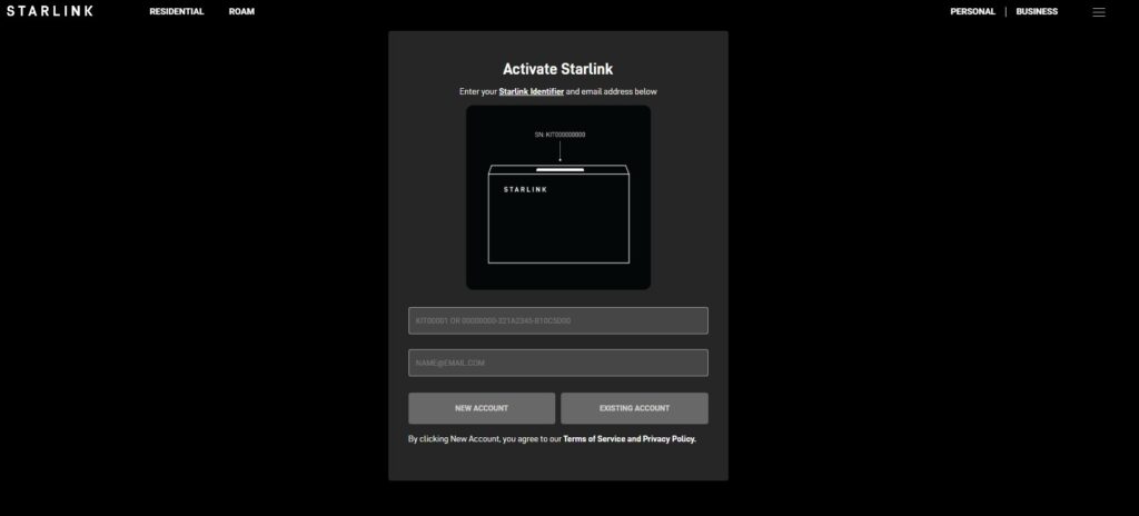 - Go to starlink.com/activate. This is where you will enter the starlink number from the label on the bottom of the box the unit came in. Don’t bother looking on the unit – it isn’t there. So, save that box.