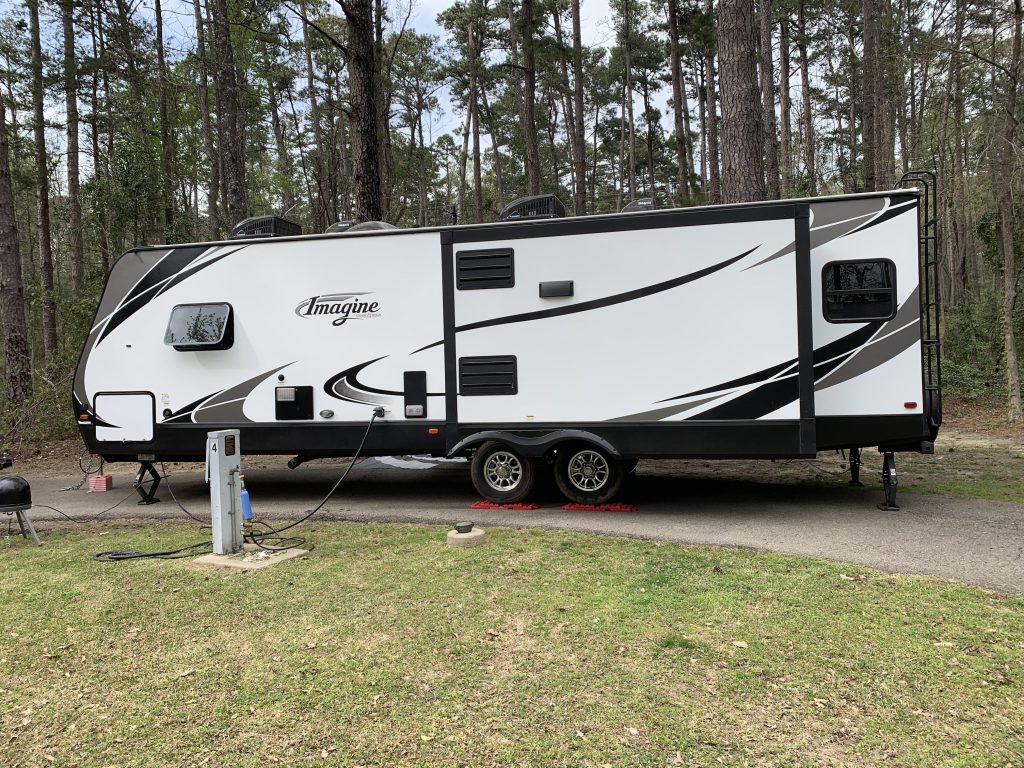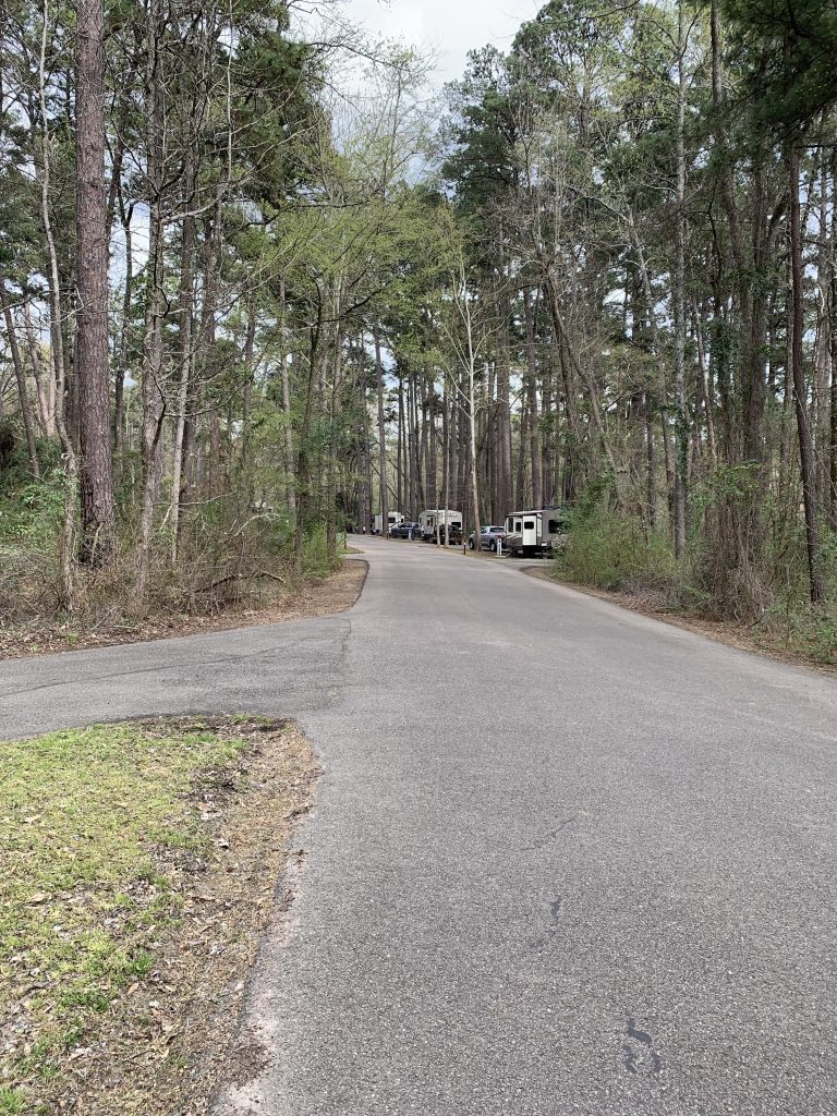 The next morning came and I knew that taking the dogs outside would be a challenge give the amount of rain that we had received. It was swampy but the area just in front of the trailer proved to be manageable for walking the dogs. The thing that you better be prepared for at Daingerfield is how dark it is. There is no real lighting in the camping area.